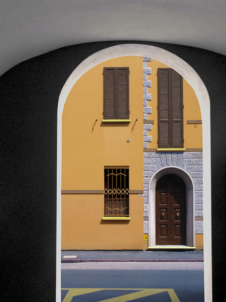 Vero scritto misto (2003), photographies de la ville de Lugo en Italie, retravaillées à l’ordinateur. Des tirages numériques fine-art sont réalisés par l’auteur et limités à 7 exemplaires, en A3. |